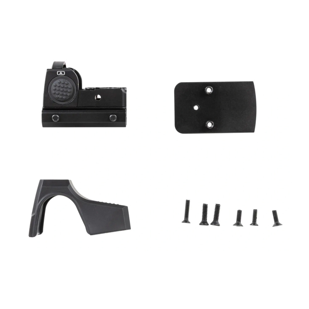 - Kutu içeriği: Red dot, montaj aparatı, tabanca montaj plakası, montaj vidaları, optik temizleme bezi, kullanım kılavuzu, alyan anahtar, ayar anahtarı