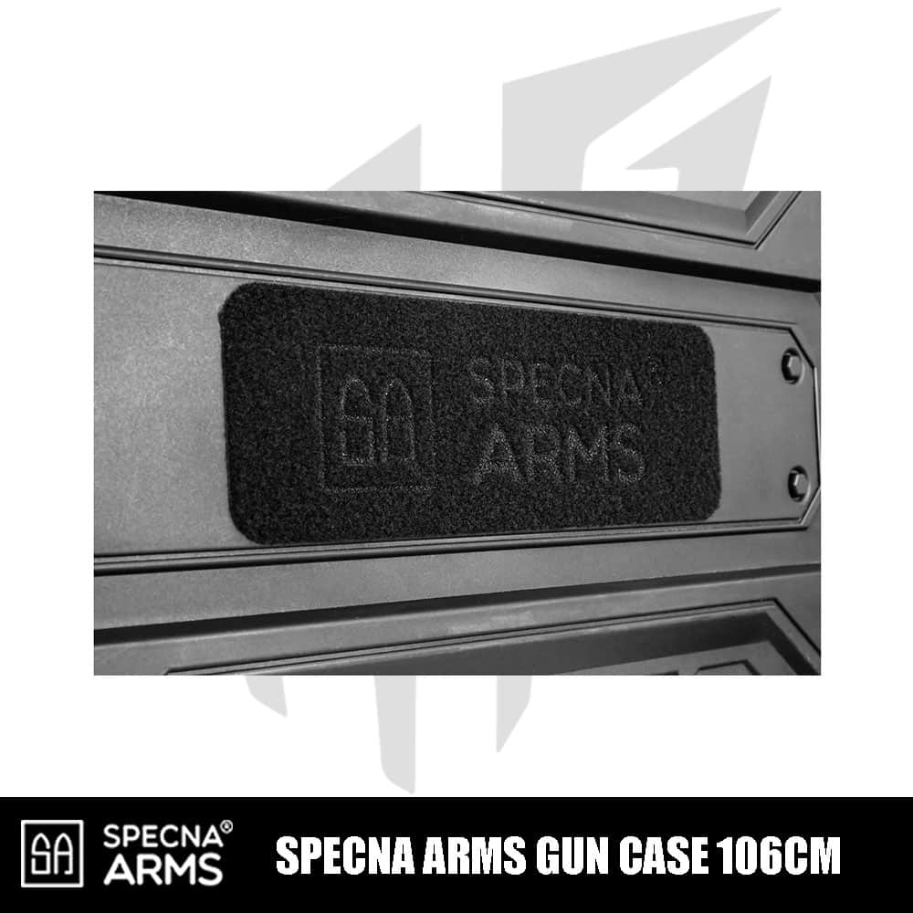 -Lazer kesimli Specna Arms logolu cırt cırtlı kilitleme paneli, 4 sağlam mandalla kapatılmıştır